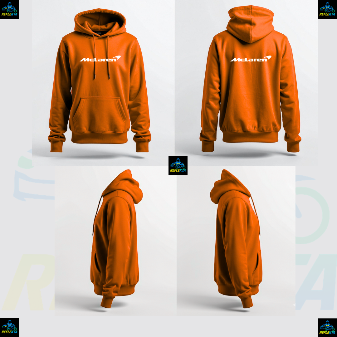 Hoodie Color Naranja Edición McLarenAlgodón perchado 280gr, abrigadorColores Disponibles: Negro, Rojo, Azul Rey, Naranja, Lila, Azul Bebé, Verde Menta